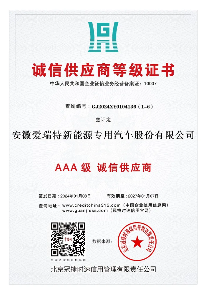АО Аньхой Айжуйтэ Специализированные Автомобили на Новой Энергии (сокращенно «Айжуйтэ») было основано в 2004 году. В 2017 году компания получила «Квалификацию на производство специальных автомобилей» от Министерства промышленности и информатизации КНР. В 2015 году она вышла на фондовый рынок, а в 2021 году было завершено строительство научно-исследовательского корпуса, ознаменовавшее трансформацию и модернизацию компании для выпуска специализированных автомобилей на новых источниках энергии. Компания уже почти 20 лет занимается разработкой оборудования для санитарной уборки на новых источниках энергии. По всей стране созданы две основные производственные базы для малогабаритной техники на новых источниках энергии с «двойным драйвером развития»: «Головная база в городе Уху, провинция Аньхой, и филиал базы в городе Наньчун, провинция Сычуань». Головная база занимает территорию в 200 000 квадратных метров, а филиал базы — 130 000 квадратных метров. Компания является профессиональным производителем, специализирующимся на разработке, производстве и продаже уборочного оборудования на новых источниках энергии.